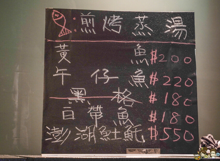 黑板上都是新鮮引進的海鮮魚類,可以煎、烤、蒸、湯,堅持新鮮用料
