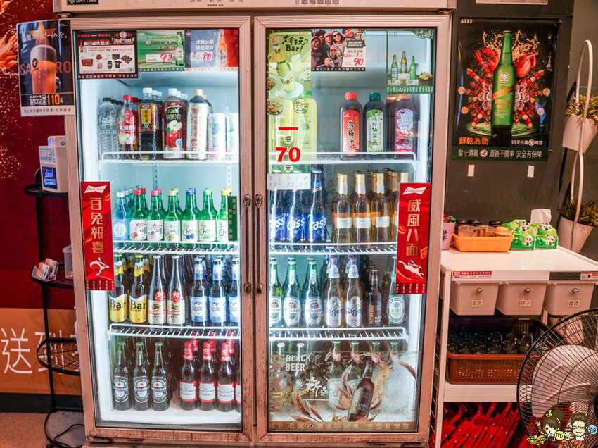 冰箱有很多啤酒種類、飲料,現場還有供應日本SAPPORO 生啤酒(一杯110元)