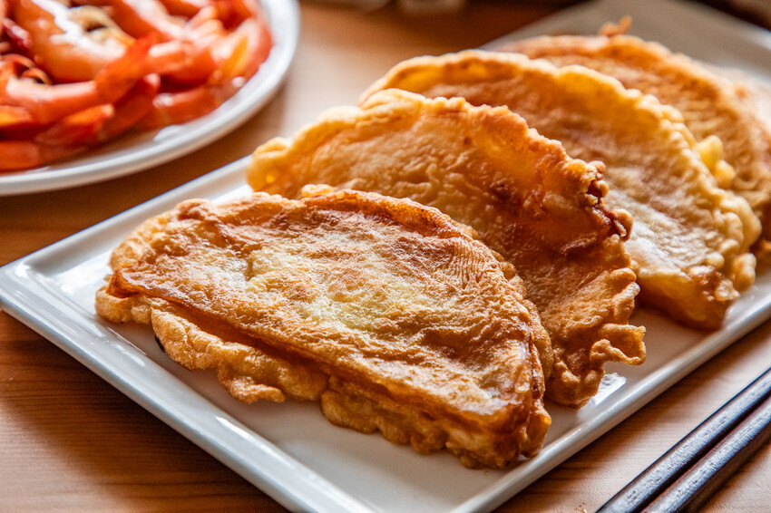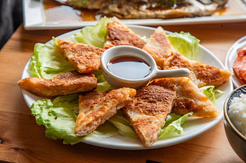 桂花蓮子甜年糕,這個也是過年的新菜,出乎我意料的超級好吃!一般甜年糕都很膩口,良品開飯的完全不會,而且裡面還有加入桂花蓮子,裹上麵糊下鍋油炸,口感軟中帶脆,甜中帶香,完全吃不膩!