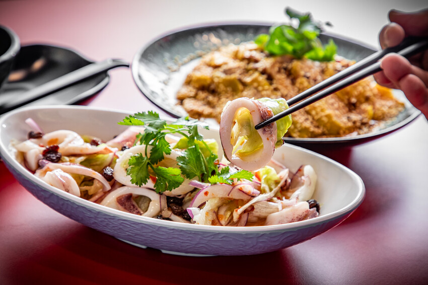 檸檬小卷沙拉,有點類似泰式料理的做法,小卷口感Q彈新鮮度一流,搭配特製醬料和檸檬,酸酸甜甜的風味,吃起來格外酸爽開胃