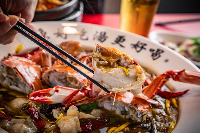萬里蟹的蟹身相當厚實,裡面的肉也很多,加上老壇酸菜的湯汁,吃起來非常過癮,而且湯頭裡也會有螃蟹的鮮味唷