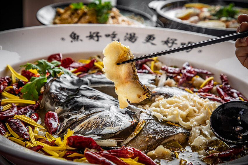 「錄鼎記魚頭酸菜魚」的大魚頭酸菜魚鍋能讓顧客能品嚐到魚頭的六個不同部位。這裡不僅有酸菜魚鍋,還可以選擇搭配萬里蟹以及各種豐富的底料,讓用餐變得更加豐富多彩,除此之外,還有許多必嚐的招牌菜、小菜、飲品和麵飯料理等,也都很有特色,呼朋引伴大家一起來吃酸菜魚吧!