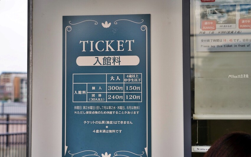 入館費用成人300日圓,4歲〜中學生150日圓,未滿4歲免費