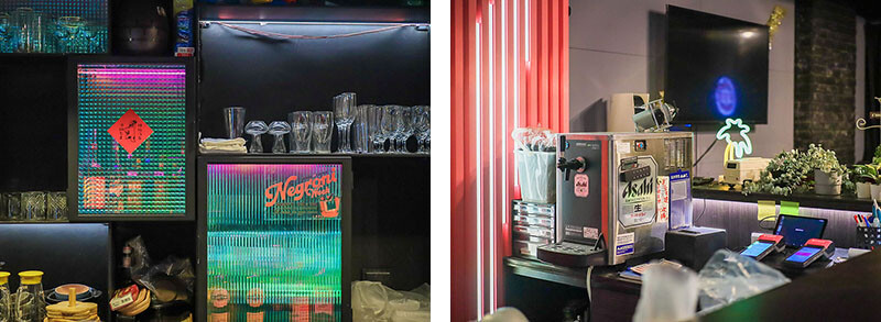 有別於時下韓系餐酒館,工業風為主體加上兩側的紅沙發,就像復刻90年代的酒吧風格,吧檯是bartender搖滾區,一個人來可以觀賞繁忙時刻,也可與其聊天分享不同的生活經歷。
