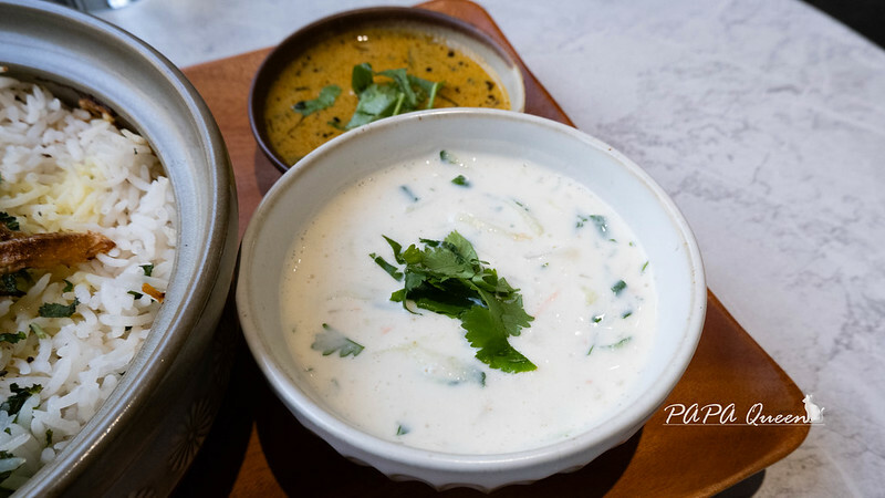 海德拉巴-印度蔬食香料燉飯套餐$420 是來自南印海德拉巴皇室菜單的傳統饗宴,看到皇室菜單好像很厲害 (大貓 :拋出一句 台灣的碗粿也是國宴菜色,想試就點囉 自己決定)
