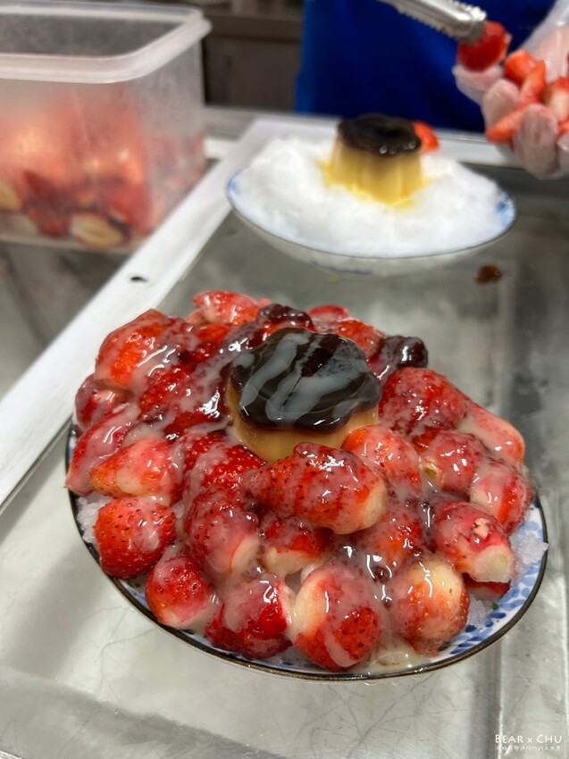 苗栗大湖元成冰菓室草莓牛奶冰增添風味,用的是甜度剛好的店家自熬草莓果醬,還有常見草莓好朋友煉乳,還有中間的統一布丁也是畫龍點睛,不僅看起來美也讓整個草莓冰吃起來甜蜜蜜、滋味滿。