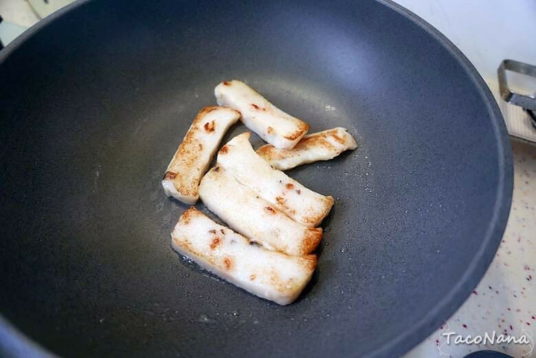 煎蘿蔔糕有個小技巧,就是油絕對不能多!還真的有差喔!我頭一 次就是油放太多,變得比較容易解體。