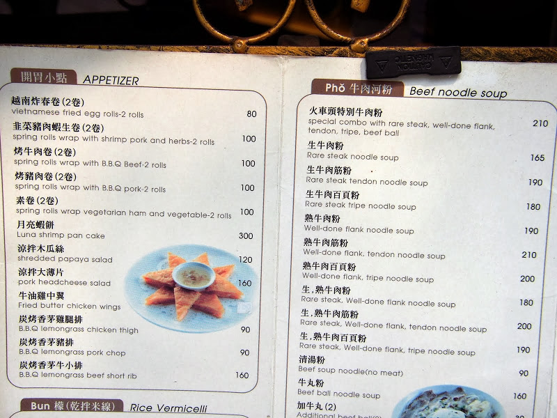 火車頭特別牛肉粉$210(裡面有生牛肉,牛筋,牛百葉,跟牛肉丸。肉類是很豐富,鮮度也不錯。不過基於我在越南吃過的河粉記憶太深刻,就覺得這湯頭很單薄。而且河粉過Q,感覺是細的板條。一般我愛Q的麵,但每種湯麵適合的麵是不同的。越南河粉裡面的河粉就是應該比較軟,而且不Q,所以我覺得這碗河粉的湯跟河粉本身都沒有達到我的標準。)