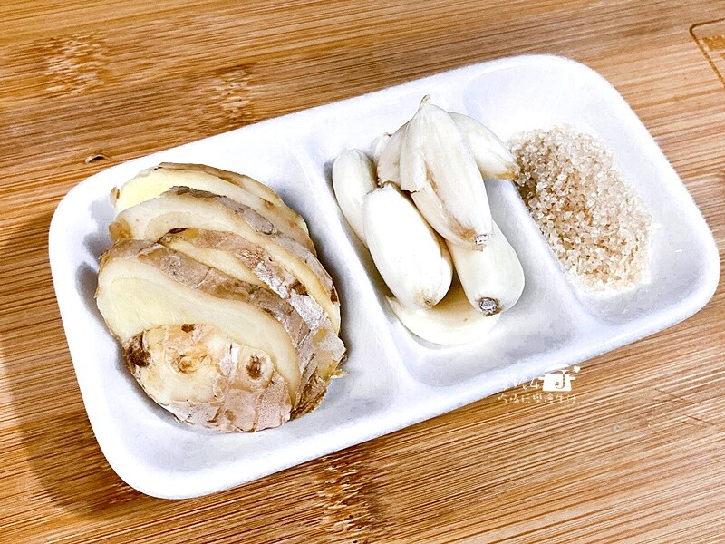 薑切片(不要去皮),蒜頭去膜,二砂糖