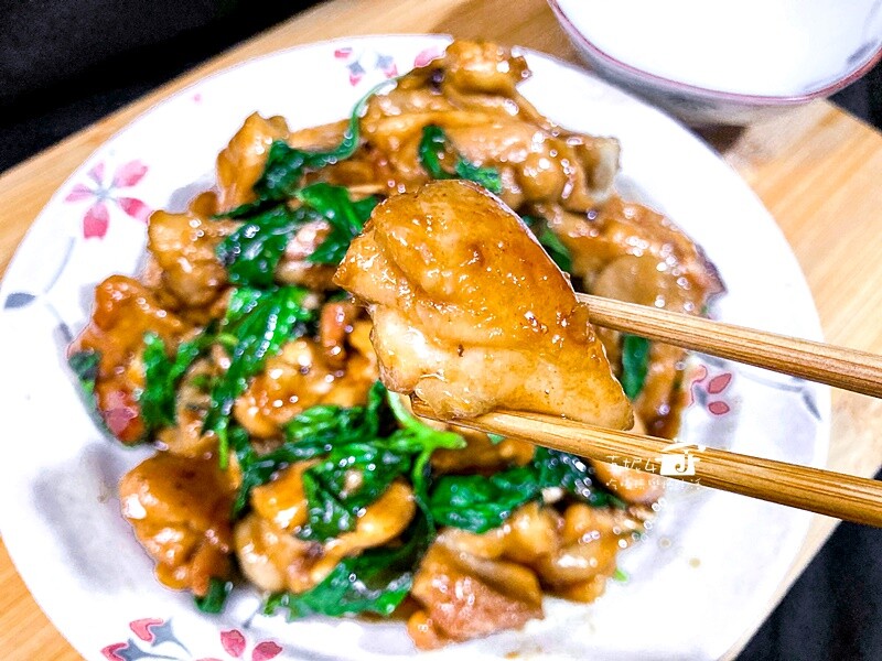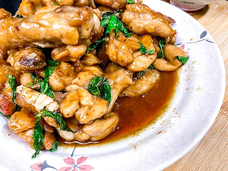 三杯雞的醬汁結合雞肉膠質還有提香的九層塔幫襯,光是這水亮醬汁就是白飯的殺手