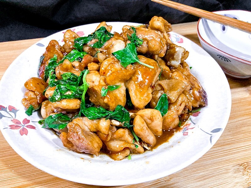 待三杯雞肉全熟後鍋裡的醬汁若不想留太多就把火力轉強讓湯汁揮發掉