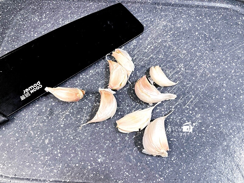 蒜頭用刀背拍鬆就能快速脫掉蒜膜