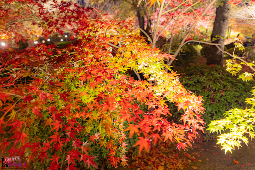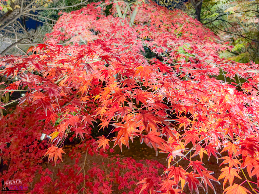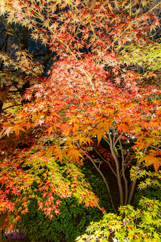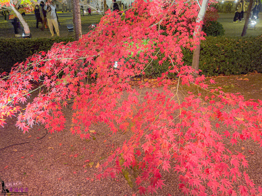 走了一大圈終於看到楓紅了,喜歡東寺的夜楓,不是用彩燈將楓葉投射紅色,而是用白燈照明讓楓葉更顯色,紅綠搭襯的楓葉有著美美的層次感。
