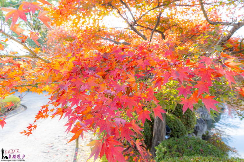 微微的涼風在庭園裡漫步著,欣賞各種楓紅呈現的景色,京都的楓葉就是如此誘人啊!