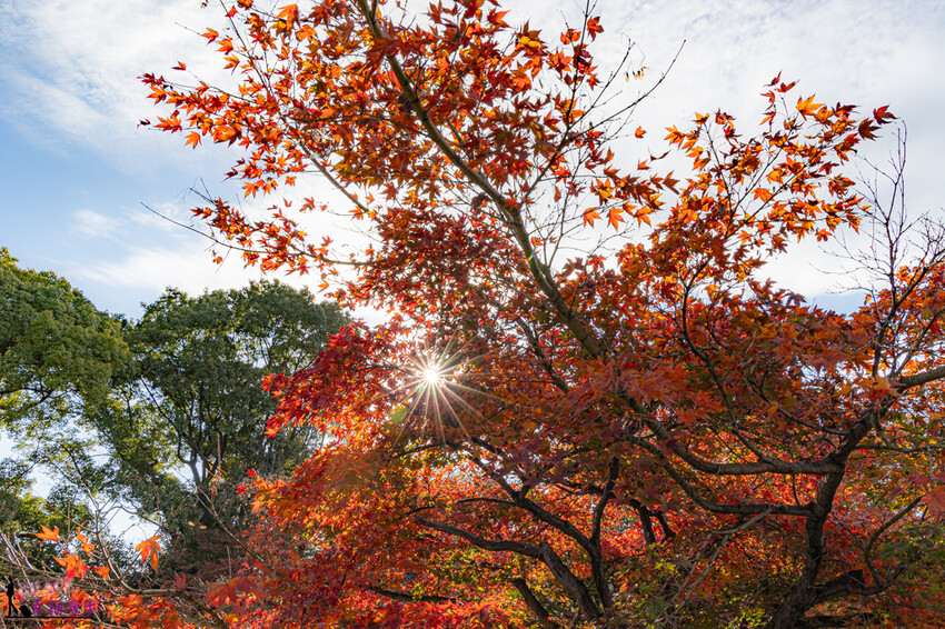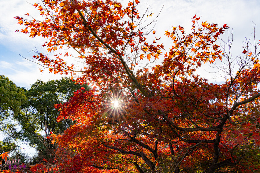 很喜歡這種陽光穿透楓葉的感覺,穿透的光斑相當閃爍,給人一種溫暖的感覺。