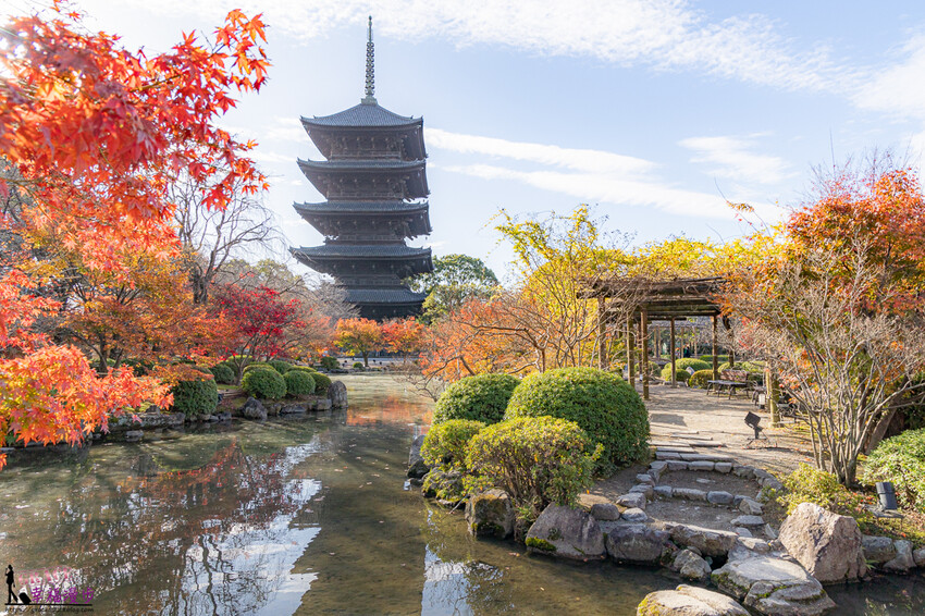 東寺的水池相當清澈,倒映著周圍的景色,如此美景怎麼看都不會膩啊!