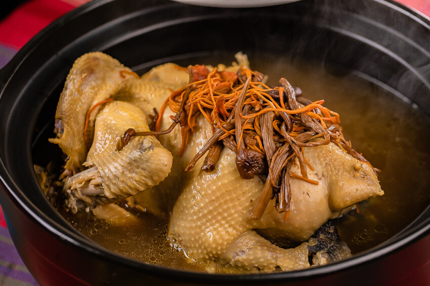 ▲▼黑蒜是一般蒜頭的三倍強,胺基酸豐富,滋補身體;新鮮正土雞與黑蒜、秀珍菇、紅棗、枸杞等中藥材,經過細火慢燉,湯頭鮮甜濃郁,黑蒜香氣撲鼻,土雞肉嫩滑,一口接一口,暖和心窩,是一道讓人食指大動的美味佳餚。