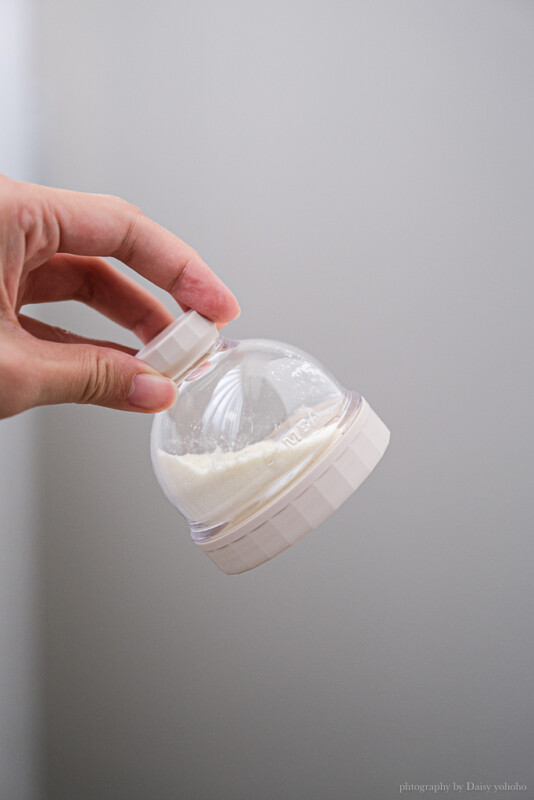 當作奶粉分裝罐使用,當半夜寶寶哭要起來泡奶時…,就會覺得它很好用!因為半夜醒來,頭腦昏昏沉沉的,有時候泡奶的量很容易失手太多或太少,所以在睡前先將寶寶要喝的奶量準備好,晚上打開蓋子直接倒進奶瓶中就好,很方便!
