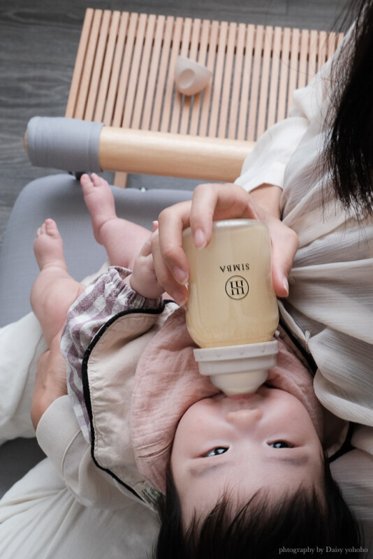 一開始在餵寶寶喝奶,根本不知道有什麼訣竅,後來才知道,原來奶瓶要拿45度,不然拿太低的話,會讓寶寶喝進一堆空氣,空氣跑到寶寶肚子內,不僅會脹氣,也可能讓當餐的奶喝不完,所以餵奶時中間會要拍隔一下,把空氣排出腸胃道,這樣寶寶喝奶就可以喝得比較順,市面有一些奶瓶都有固定的餵奶角度跟方向,對於慌亂的新手爸媽來說這真的很麻煩,但小獅王辛巴的奶瓶沒有這個問題,不論什麼角度,都可以自由餵奶。