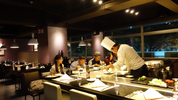 包廂外就是鐵板燒及鍋物的用餐區,剛好看到主廚正在精心為客人烹煮食材