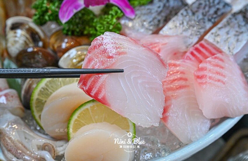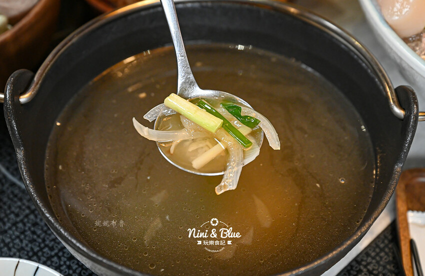 提供鯛魚、鱸魚兩款魚片,基本上都是無刺,但只要是魚還是要自己留意小刺。魚片都切得頗有厚度、很鮮嫩有光澤、富彈性相當好吃,貼心提供撈勺讓你放在湯中煮,就比較不會煮到忘記而魚肉分離啦~