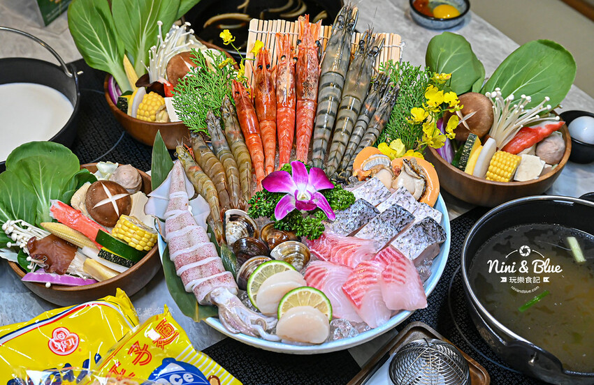 包含有豪華海鮮盤、雙拼15盎司肉盤、菜盤*2、雞蛋*2、前菜*2、附餐*2、鍋底*2