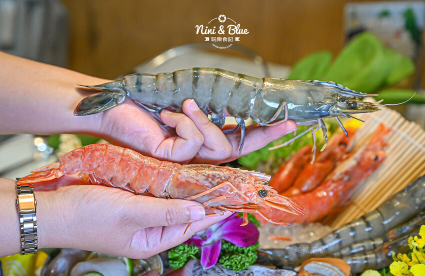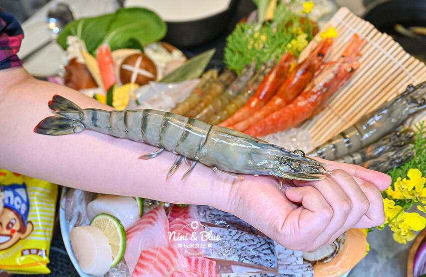 豪華海鮮盤裡的蝦子個頭都不小,重點是很新鮮~店員還會貼心提醒每一款海鮮適合的涮煮時間,讓你在最佳熟成時間內品嘗美味,像是生食級的胭脂蝦和天使紅蝦就不用煮太久,以免影響口感喲!