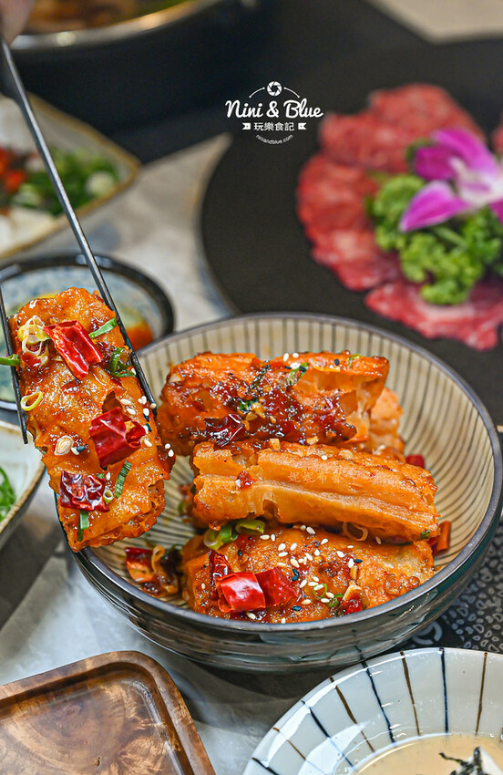 除了生食配料,也有多款熟食小菜可以加點。酥脆咖滋的油條拌上大紅袍、花椒特調的椒麻醬,香辣酥麻好涮嘴,咬下去還有響亮的喀脆聲,愛吃辣的朋友們點起來!