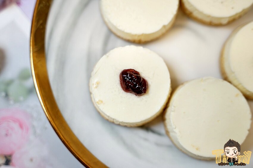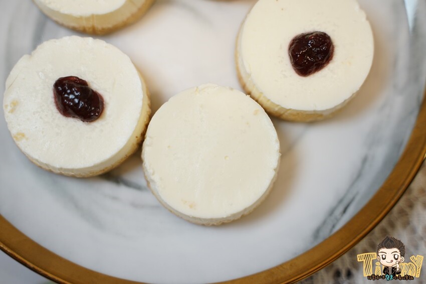頂級白酒九宮格慕斯一口甜點有三種口味,純白原味、水果酸甜及厚奶鹹甜。