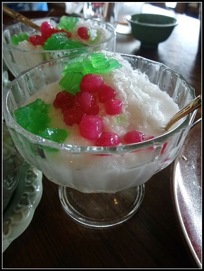 本來的甜點是香蕉煎餅,結果小姐說原料缺貨,所以改成摩摩喳喳或紫米粥,原價都是$120。
