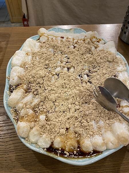 甜點為烤麻吉,甜甜糯糯,好燙小心燙口,加上糖漿、花生粉好好吃🤤