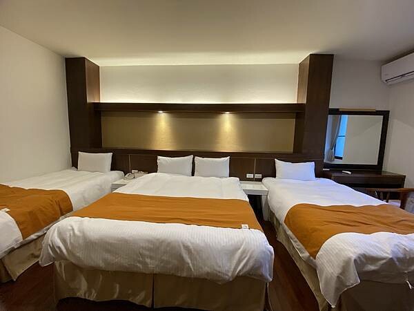 兩張單人床、中間為雙人床,而且實際躺下來感覺單人床也比一般單人床寬大?哈哈哈