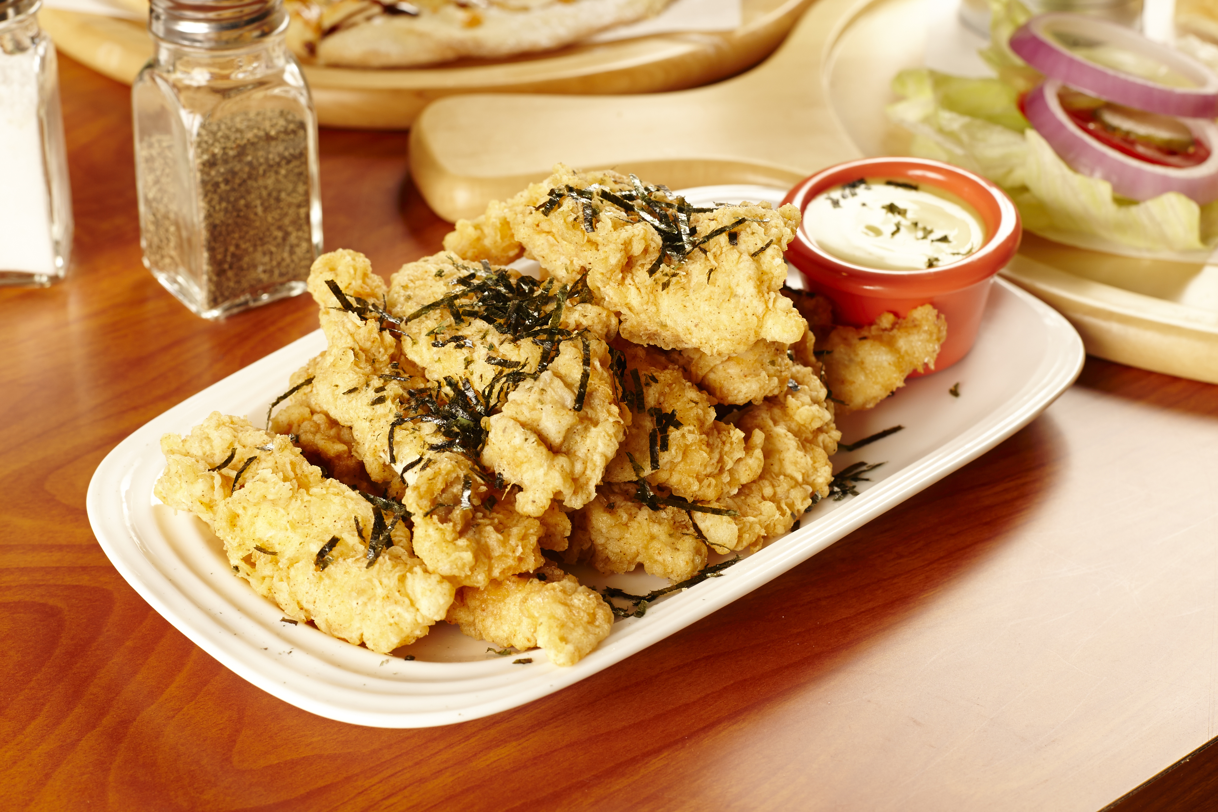 店家獨特研發的麵衣,三道程序的前置作業,將雞胸肉加入多種香料醃製,厚實的雞柳條,酥炸至金黃,肉質軟嫩富含豐富肉汁,撒上海苔絲,佐以些許蜂蜜芥末醬,美味得令人不覺一口接一口。