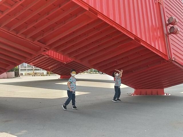 這個紅色貨櫃的裝置藝術,寶小銘還滿喜歡的,在這裡拍拍照,也能感受到高雄海港貨櫃的特色。