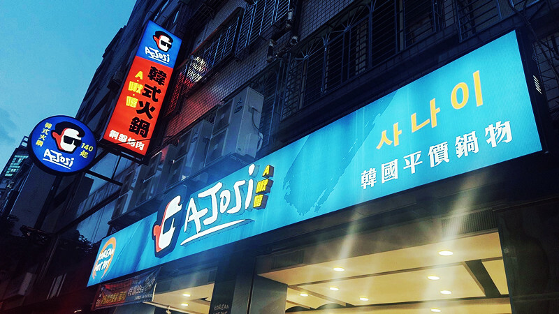 AJosi韓式火鍋台中東興店的看板配色挺搶眼