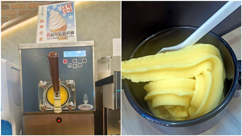 那天霜淇淋機的口味是芒果的,技術欠佳,擠在杯子裡吃都塌了一半