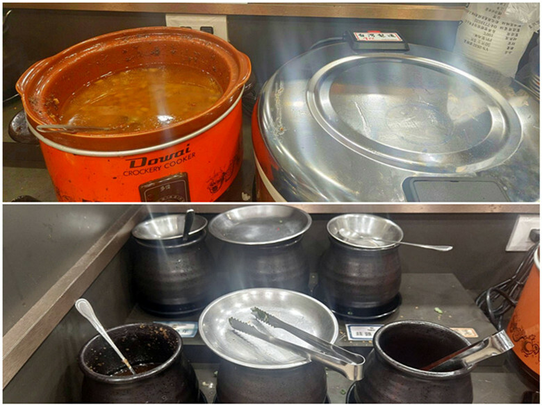 滷肉搭配白飯幾乎是平價火鍋的標配了,醬料區則有6種不同醬料可自行添加