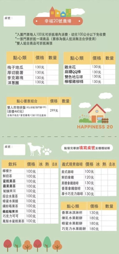宜蘭冬山鄉【幸福20號農場】入園門票每人100元,幼兒100公分以免收費,可全額低消費。這裡是老家的舊豬舍、老果園改建。空中樹梢體驗、原木小夜燈DIY,還有庭園餐廳享用下午茶!
