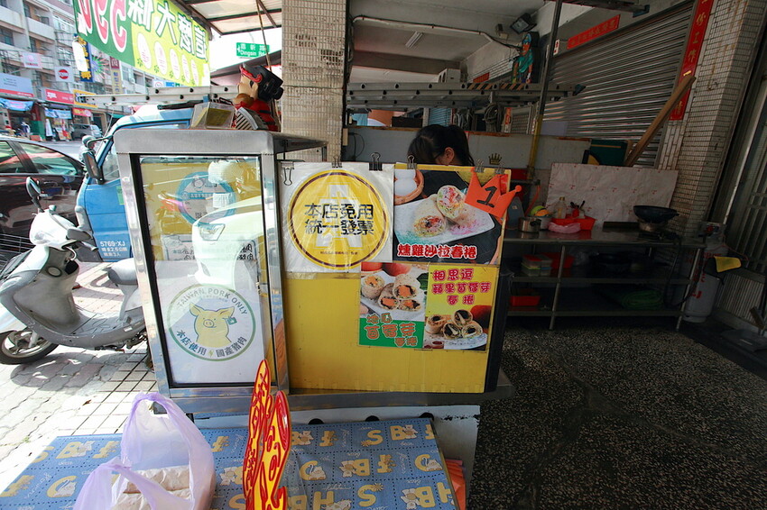攤位上貼春捲大賽得獎獎狀供顧客參看。