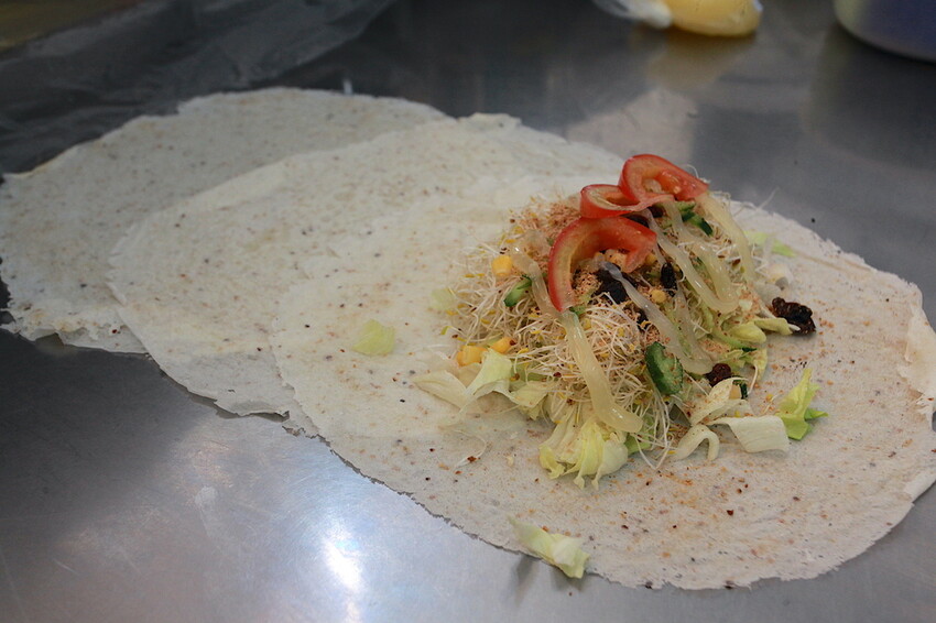 這春捲厚實麵衣裹著滿滿的餡料,咬下去有嚼勁的青菜清脆鮮甜健康好吃