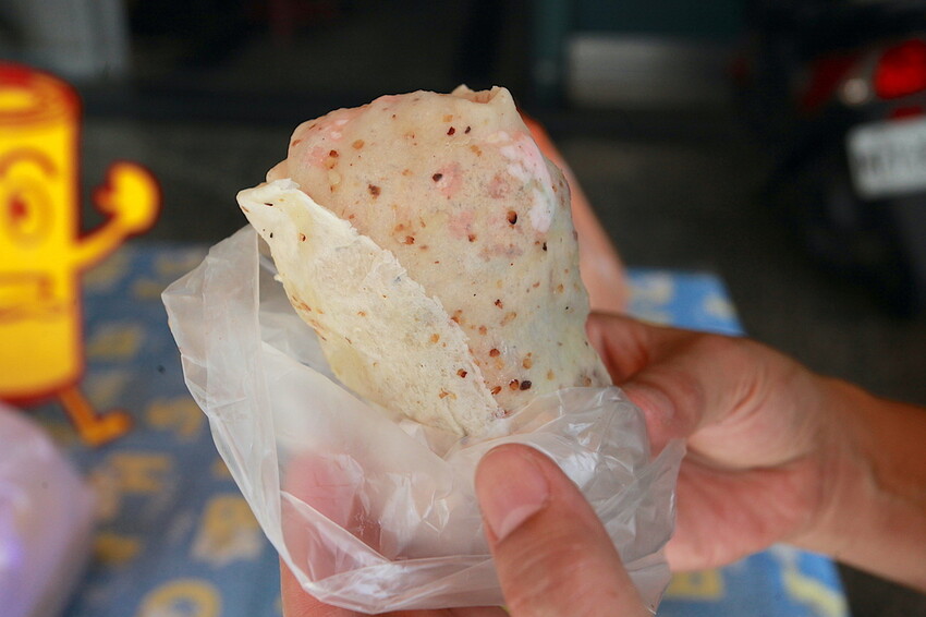 這是古早味春捲(葷)(半糖)60元,這春捲厚實麵衣裹著滿滿的餡料,咬下去有嚼勁的青菜清脆鮮甜,搭配花生粉散發的清甜韻味超好吃