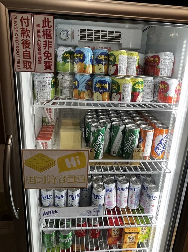 如果想喝一些韓國飲料,也有準備喔!! 但記得一定要先結帳才能取用