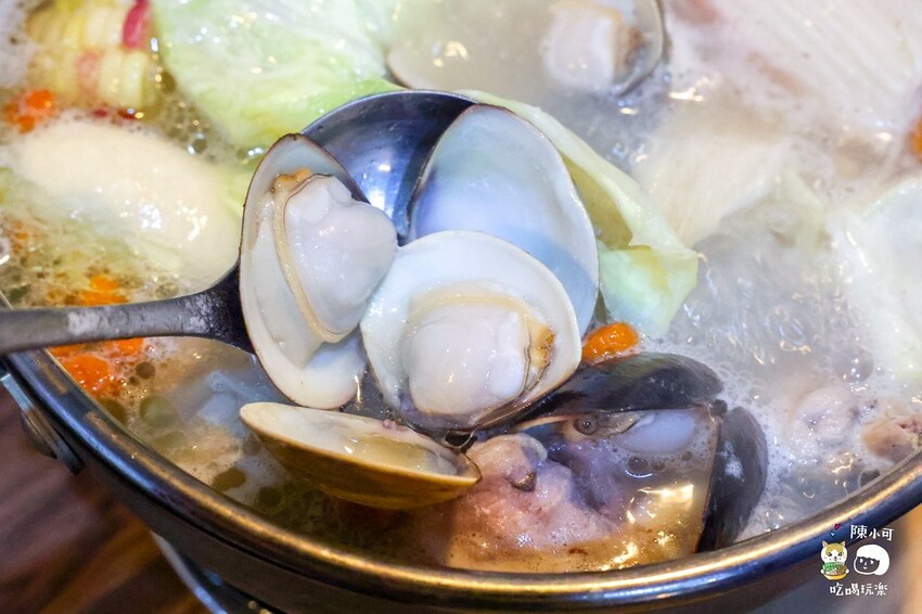 鍋裡的蛤蠣比50元硬幣還大,肉質飽滿新鮮。