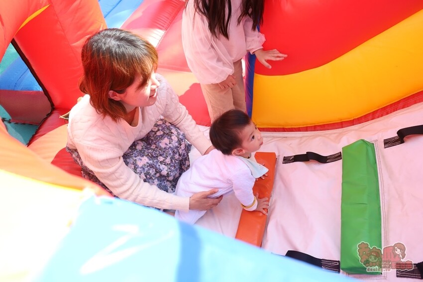 小Yoga第一次體驗充氣氣墊,雖然還不太能玩,但爬的很開心哈哈!之前我們有做影片分享,大家可以看一下~