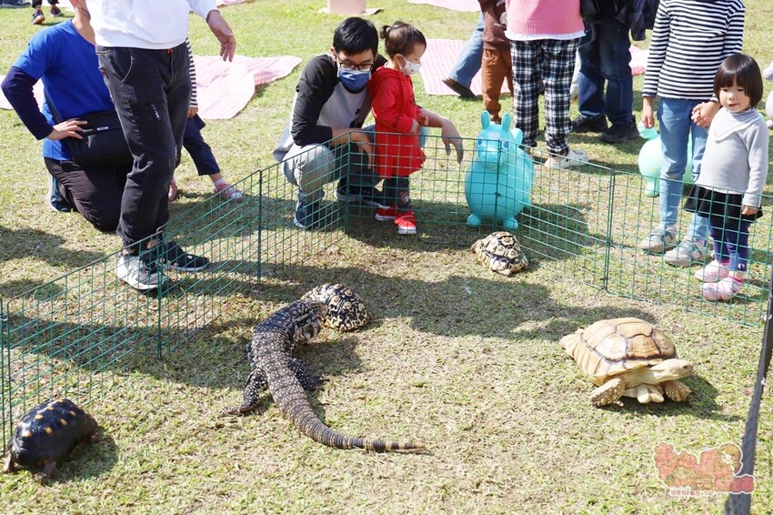 早上10點~11點半,就由樣爸森友會帶來一系列可愛的動物,和不常見的無毒蛇類、守宮、象龜和各種特色的爬蟲類,現場都會有專人協助來體驗,可以放輕鬆的玩,重點是全部都免費,讓小孩可以透過小動物來場生命教育體驗。