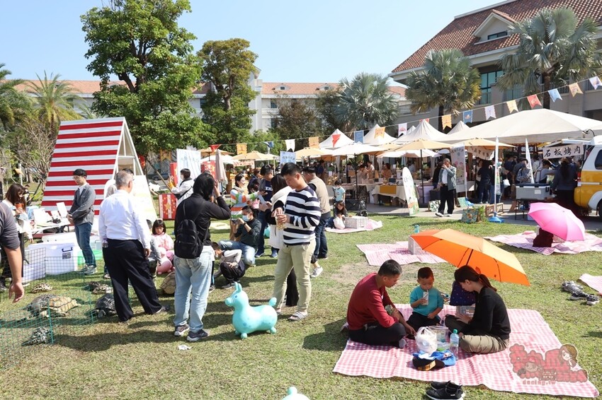 逛完了市集,前方的草皮區還有設置野餐區,不用自己帶野餐墊,萬國通路都幫你們準備好了,只要人來就好,享受一個愜意的週末吧~