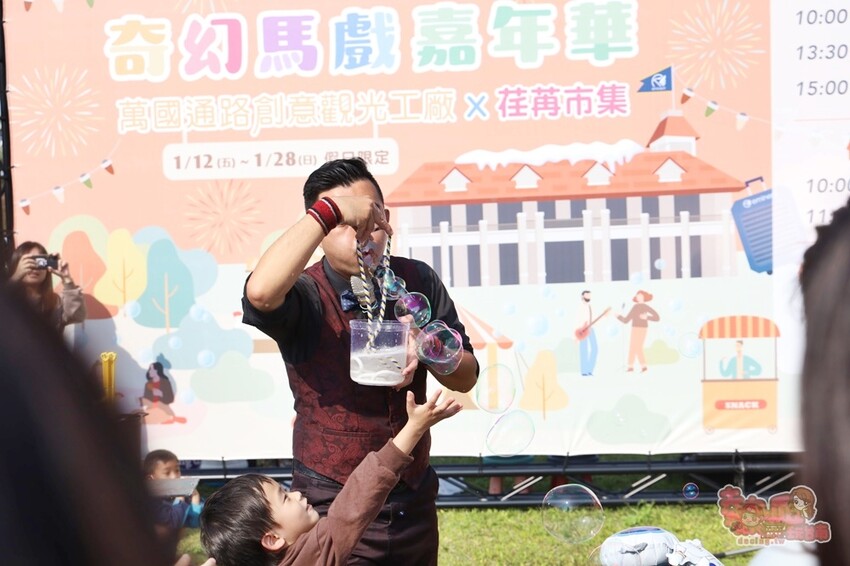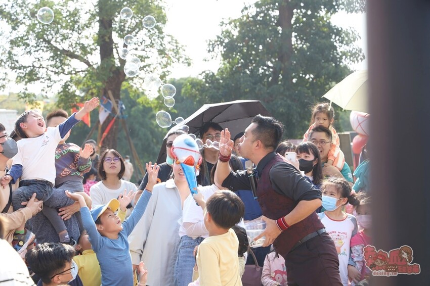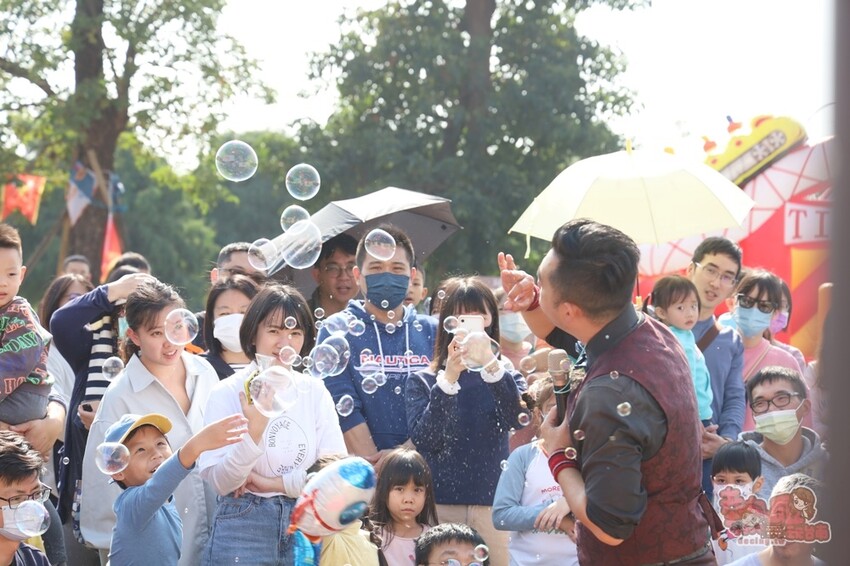 小朋友們最愛的泡泡表演秀更是不能錯過,而且整場活動也足足有一小時喔,除了可以看到表演者的秀之外,還可以讓孩子們上去互動,更有泡泡的教學體驗,真的很值得一來,重點!也是免費參加喔~