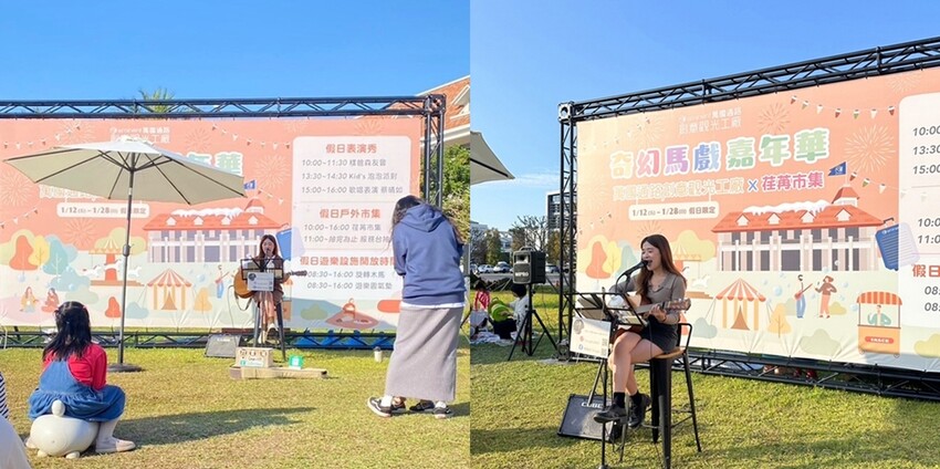美聲吉他表演是由參與過許多市集的街頭藝人蔡晴如來演唱,聽歌吃美食陪你度過CHILL CHILL午後。