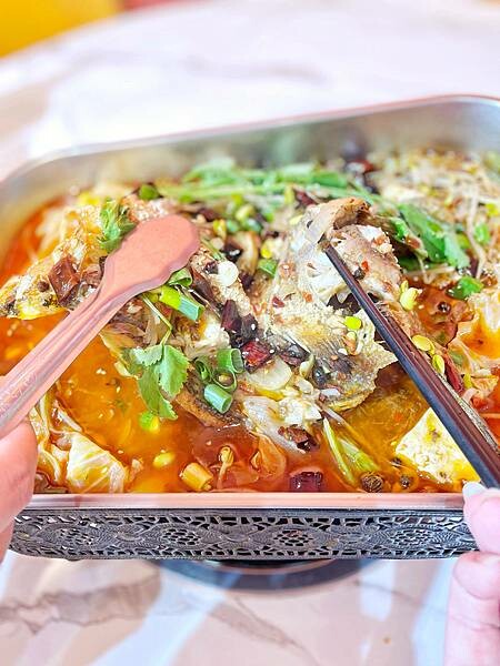 有三種口味喔!香辣烤魚、不辣的蒜香烤魚、泡椒烤魚,我選了最經典的香辣烤魚(小份$680)