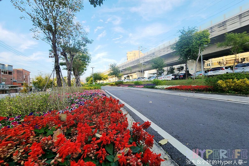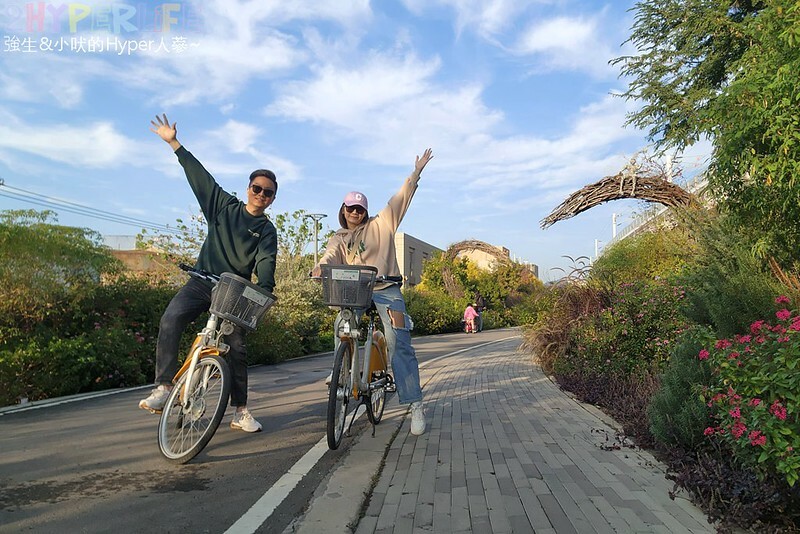 繼續往前騎終於來到這天想來打卡的目標景點-豐原花之道啦!有別以大片樹木和草皮為主的公園景觀設計,豐原花之道採用自然庭園的概念打造成一個開闊的戶外花園,看到路邊的花團錦簇仔細算算後,會發現總共有12種花花草草哦!